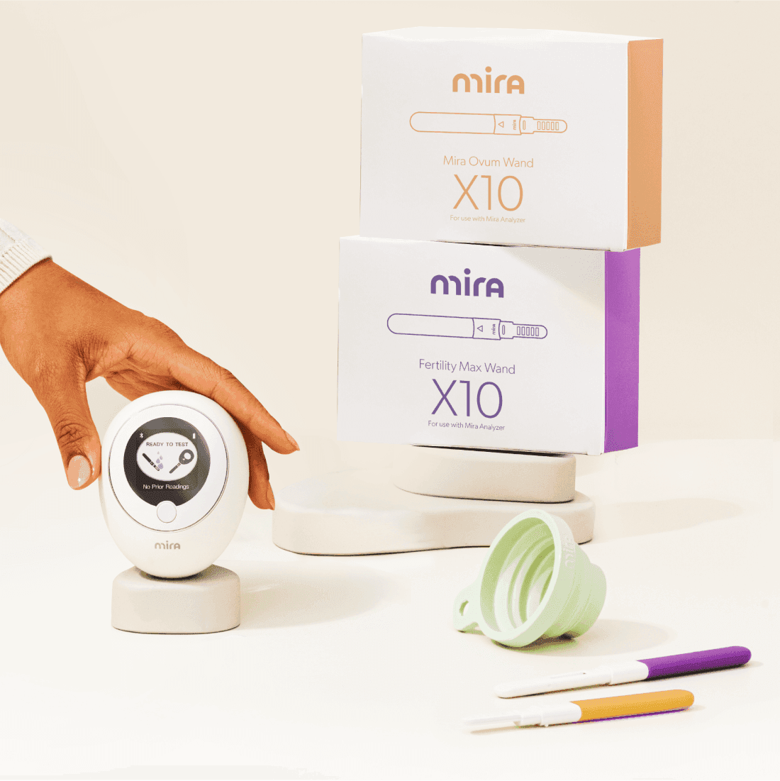 ³ Based on 2025 lab comparison study by MiraLabs evaluating FSH in Mira versus other popular at-home fertility trackers. Mira outperformed competitors in sensitivity, linearity, and accuracy, particularly at low concentrations. “Up to 2× higher sensitivity” is based on comparative detection thresholds. Results may vary. Mira is not a diagnostic or contraceptive device.